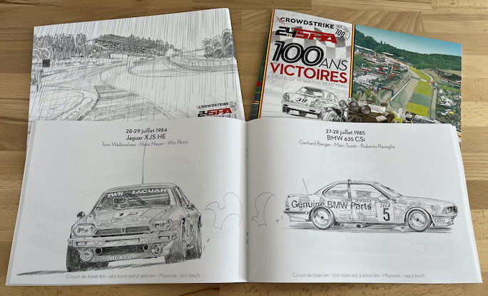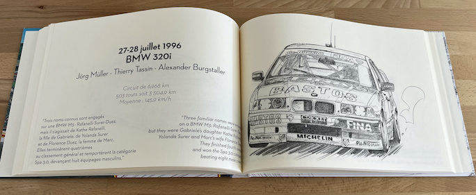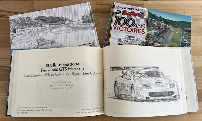 Imprimé sur du superbe papier, agréable au touché, un format "paysage" mettant en valeur les dessins de Benjamin, une couverture rigide de qualité, le livre en lui-même est clairement une pièce de collection estampillée "Produit officiel Crowdstrike centenaire des 24 Heures de Spa".