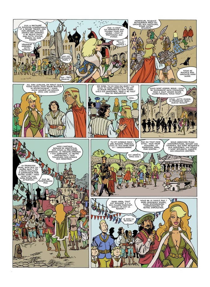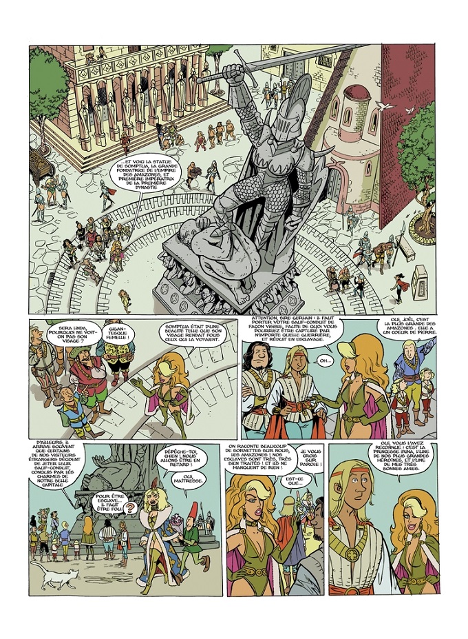 Toujours est-il que ces élucubrations en font rêver plus d’un dans l’empire amazone : nos héros évidemment, mais également les terribles Amazones des Capes Noires, un magicien et sa surprenante assistante, …