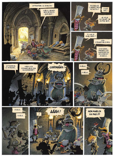 Sfar et Trondheim s’amusent comme des petits fous. Le plaisir de leur travail d’équipe se ressent à la lecture, en particulier dans cette série de Donjon Parade, avec des histoires comme on aurait pu en lire dans Mickey Parade… ou presque. Les auteurs ne prennent pas les enfants pour des crétins, que ce soit les personnages de l’histoire ou les lecteurs qui, dès dix ans, comprendront l’humour décalé qui leur est proposé.