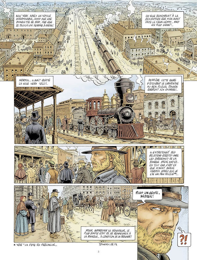 Le chemin de la vengeance a mené notre pistolero solitaire jusqu'à New York, sur la piste de l'homme qui a semé le chaos dans sa vie et au Kansas : le sénateur Dawson. L'homme n'est pas facile à approcher, et les ruffians de la grande ville se révèlent plus coriaces que ceux des plaines. Le héros anonyme peut-il compter sur l'aide de Miss Lyle, cette mystérieuse enquêtrice qu'il ne cesse de recroiser ? Une seule chose est certaine : cette fois-ci, aucune vision ne pourra le préparer aux révélations qui l'attendent.
