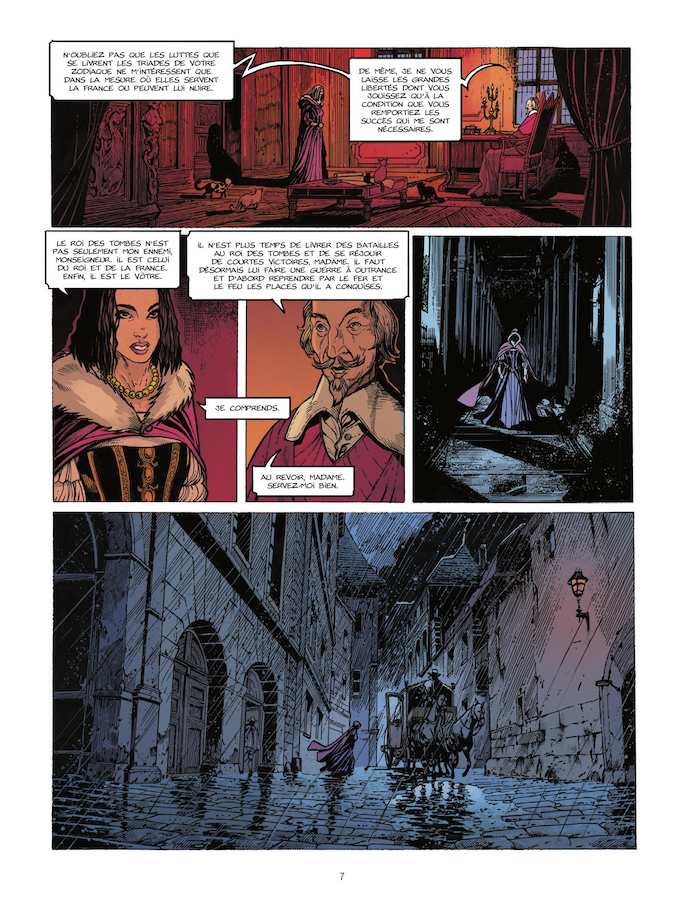 Mais au fait, quel est le signe du Cardinal ? Et qui sont d'ailleurs ces autres signes ? Pierre Pevel a ainsi, tout en ouvrant de nouvelles pistes dans son intrigue, laisser un champ d'action suffisamment riche pour garde un suspense entier avant ce dernier opus ! Du grand art narratif ! Un "Batman du XVIIe siècle" dans toute sa noirceur nocturne !