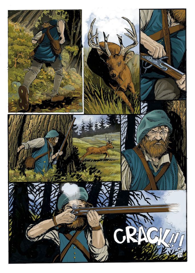 Premier tome d'une série prometteuse, le scénario de Boris Talijancic nous emmène dans un récit agréable et rythmé. Un subtil mélange de Rob Roy, un souffle de Braveheart, une touche d'Histoire et un soupçon d'une éventuelle chasse à la mode "Dernier des Mohicans", le tout revisité et mixé à la sauce des "Pionniers du Nouveau Monde" dans l'histoire de James et son oncle Modoc !