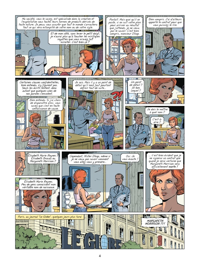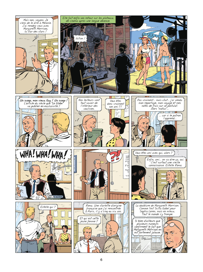 Parmi ses doublures, Estelle Roma, petite starlette française inconnue, est une amie de Bob Garcia. Elle propose au journaliste people, ami de Guy Lefranc, de venir à Los Angeles la rencontrer pour quelques révélations intéressantes. Comment refuser une telle offre ? Surtout que cela serait peut-être l’occasion de rencontrer Margareth Morrison elle-même ! Une future exclusivité pour « Le Globe » !