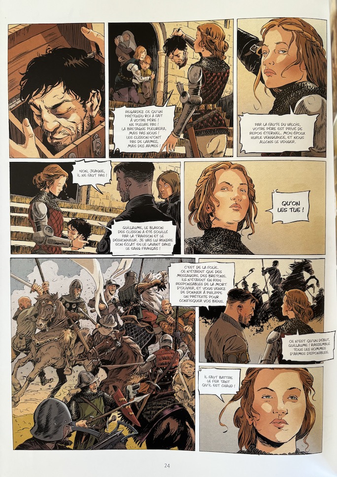 Loin d'Alix et de Guy Lefranc, Roger Seiter nous plonge ici dans un récit épique palpitant. Bien que basé sur des faits réels, le peu de documents réellement fiables d'époque, et de l'aveu même de Roger Seiter, il s'agit ici d'une œuvre fictionnelle. Cependant, narrée ainsi, elle ne peut que nous donner l'envie d'en savoir plus sur cette Jeanne, méconnue de l'Histoire de France ... peut-être car, contrairement à 2 autres Jeanne célèbres (Jeanne d'Arc et Jeanne Hachette), Jeanne de Belleville s'opposait au Roi et était dans le "mauvais camp" (tout dépend évidemment du point de vue dans lequel on se place !).