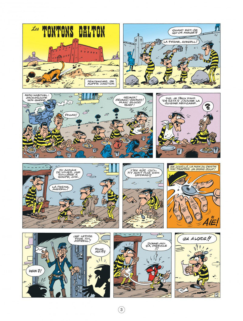 Pénitencier de Muffin Junction : « Quand est-ce qu’on mange ? » ; « La ferme, Averell ! » Pas de doute, la première bande nous le confirme, on est dans la nouvelle aventure du cow-boy qui tire plus vite que son ombre et on ne va pas être déçu.