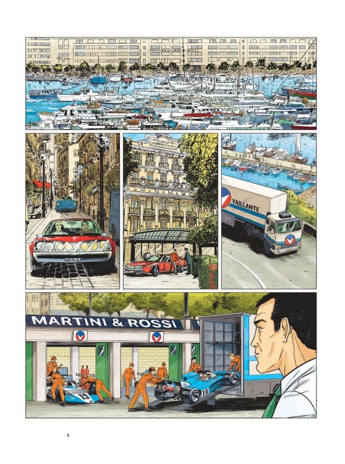 Et en parlant de voitures, en plus des véloces F1 version 1971, le lecteur pourra admirer une légendaire Vaillante – Commando Ford en pleine action ! Des scènes de poursuite et de course rythmées, nerveuses, … comme on adore en voir dans les aventures de Michel Vaillant !