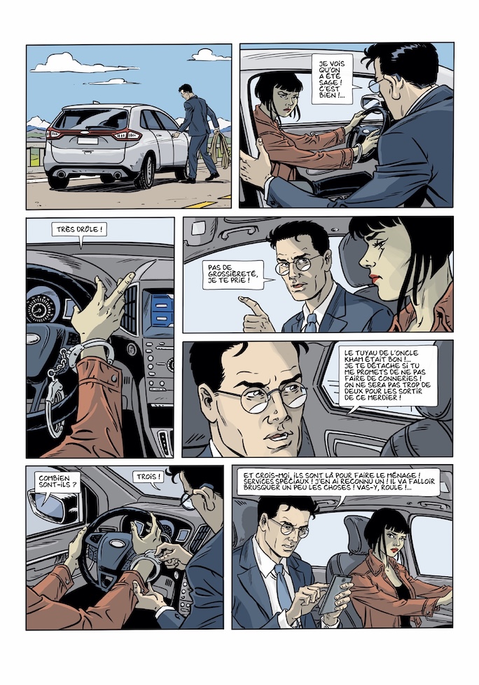 Auteur également du stoyboard, André a conservé sa dynamique dans le découpage des planches, des séquences. Une mise en page faisant la part belle à l'action et à l'énergie dégagée par la narration.