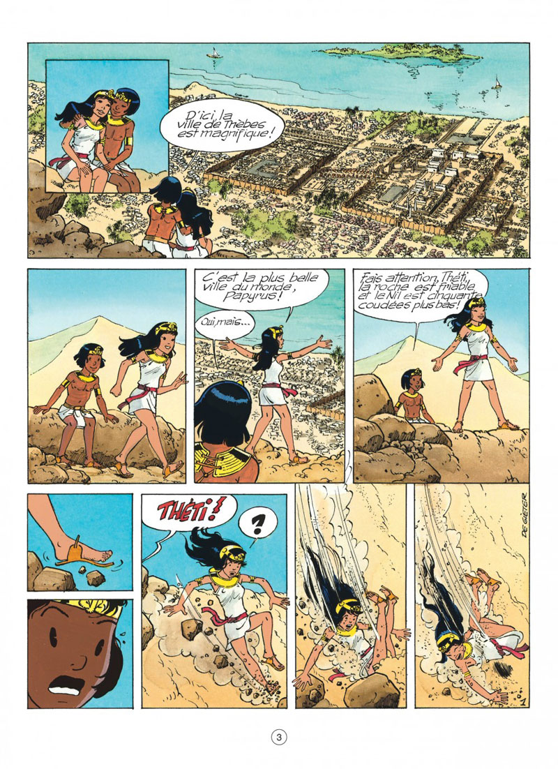 Mais qu’a donc fait Papyrus pour en arriver là ? Son ami Pouin n’aurait-il pas été trop bavard ? En effet, ce dernier a appris que Papyrus serait descendant de Pharaon. Il pourrait donc être amené à régner ? Mais entre complots, machinations et fourberies des grands prêtres, Papyrus ne va pas être ménagé. Théti-Chéri et Imhotep vont tout faire pour l’aider à s’en sortir. Mais y arriveront-ils ?