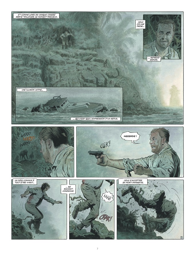 Le dessinateur François Miville-Deschênes est à l’origine du projet. C’est lui qui en a soumis l’idée à son scénariste de Reconquêtes. Il dépeint une île au décor paradisiaque et aux pièges cauchemardesques. Dans le cahier graphique complémentaire, on peut profiter de recherches de personnages, des différents projets de couvertures, ainsi que des exemples de premiers découpages de planches que l’on peut comparer avec la version définitive publiée. A mi-chemin entre ceux de Swolfs et d’Aymond, ses personnages montrent qui leur sévérité, qui leur beauté froide. Classique et maîtrisé.