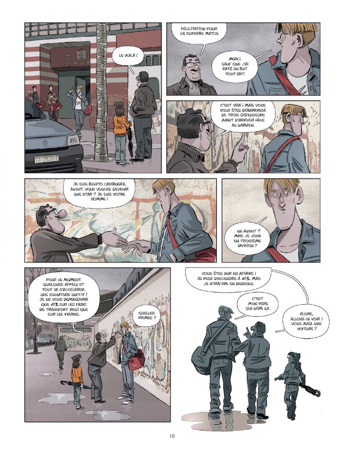 Un album qui se lit, tout en regardant (ou pas) un match ... en se disant que derrière chacun des 22 acteurs sur le terrain, il y a clairement des arrangements, des marchandages, beaucoup ... énormément d'argent ... mais aussi énormément de détresse pour celles et ceux qui en fin de compte ne sont que des pions sur un terrain de jeu avec 2 goals et un seul ballon !