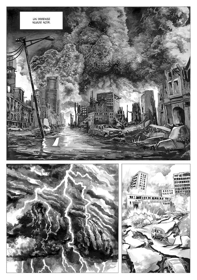 "Un jour tout s'est éteint. L'ère du Grand Nuage Noir a commencé. Les villes furent détruites. La planète devint notre ennemie. L'humanité disparut et des bêtes immenses apparurent, dévorant ceux qui n'avaient pas été emportés.