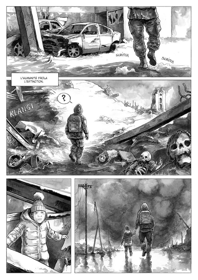 Bref une nouvelle haletante, rythmée, sans véritables temps morts superbement mis en planches par un Amaury Bündgen qui nous avait déjà scotché avec son trait réaliste dans "Le Rite" ! Un "noir et blanc" des plus contrastés et vertigineux dans ses cases de perspectives et d'actions.