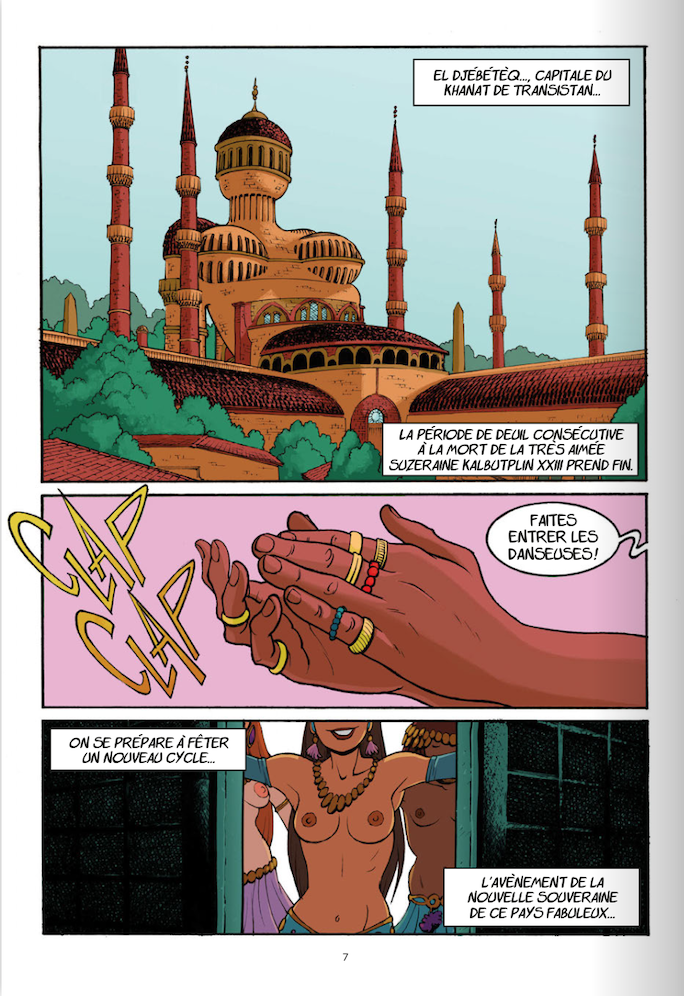 Aux confins d’un Orient merveilleux, aux portes des Indes, la rejetonne (illégitime) du Cimmérien et d’une Hyrkanienne, arrive dans la capitale du Khanat du Transistan, El Djébétéq. Le pays est en plein deuil … La Reine vient de trépasser et sa succession n’est pas « évidente », laissant son Sultan d’époux dans une situation complexe. En effet, la princesse Va’azelin est promise au prince Albut’envu, mais une guerre risque d’éclater avec le royaume voisin, le Patryarkhan !