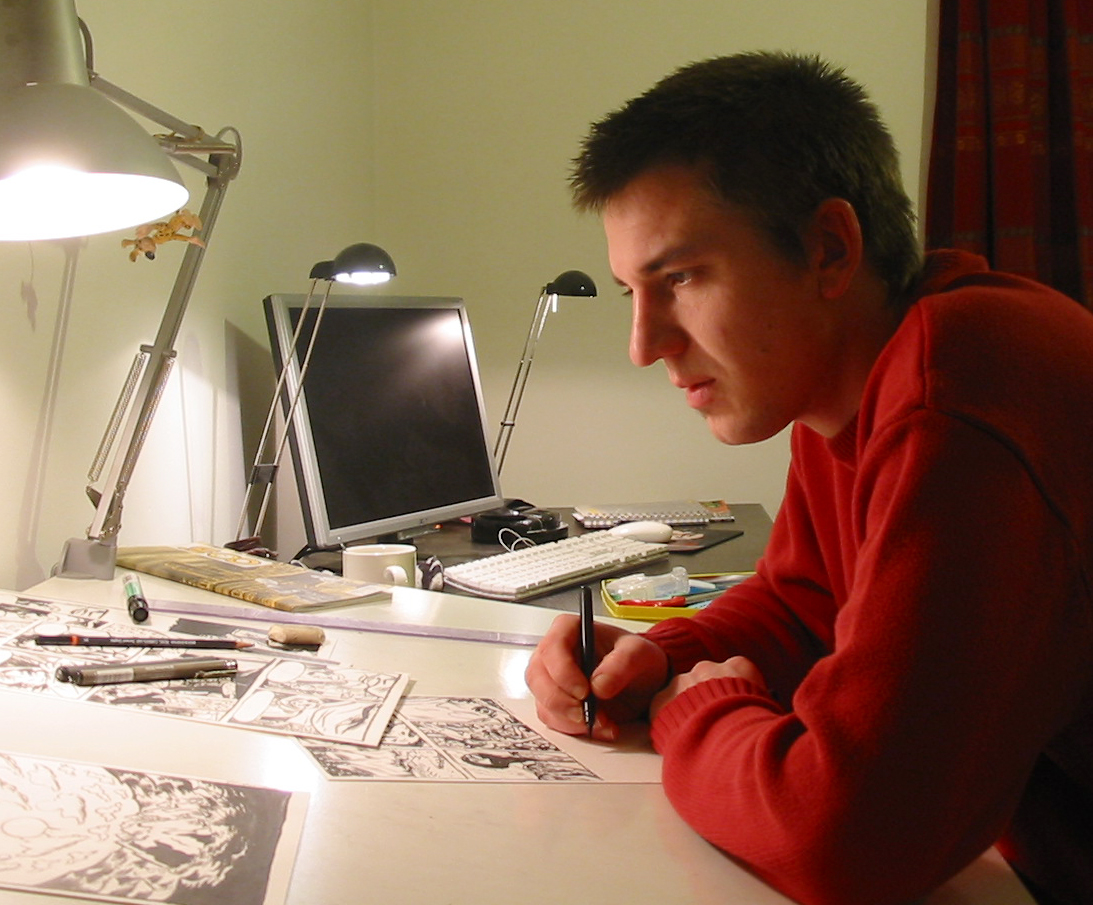 ND : En quelques mots, je suis né à Charleroi en 1980, j'ai grandi tranquillement à la campagne. J'ai étudié la bande dessinée à l'institut Saint Luc Bruxelles dont je suis sorti en 2002. Depuis je vis et travaille à Bruxelles, essentiellement comme graphiste d'abord dans un studio, maintenant en free-lance. J'ai fait pas mal d'autres choses: organiser des festivals rock, animer des enfants & des ados, ... Mais j'ai toujours fait de la bande dessinée et j'espère en faire de plus en plus!!