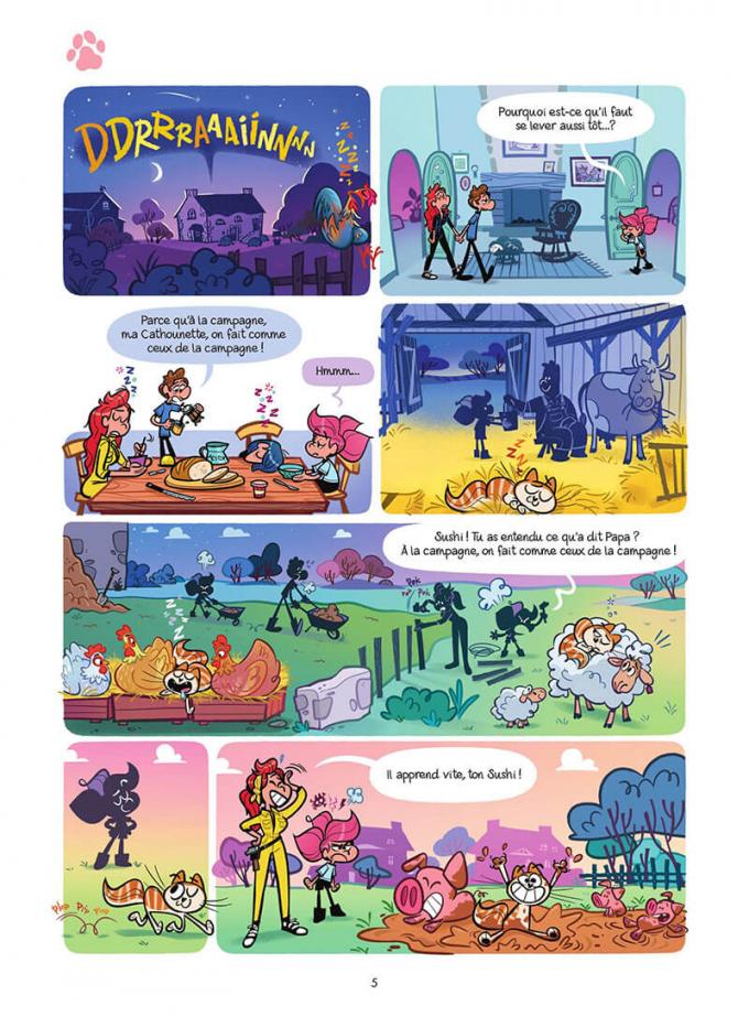 En attendant, immergez-vous à la campagne dans Cath et son chat, tome 9, le seul album où vous verrez un Sushi manger des nuggets.