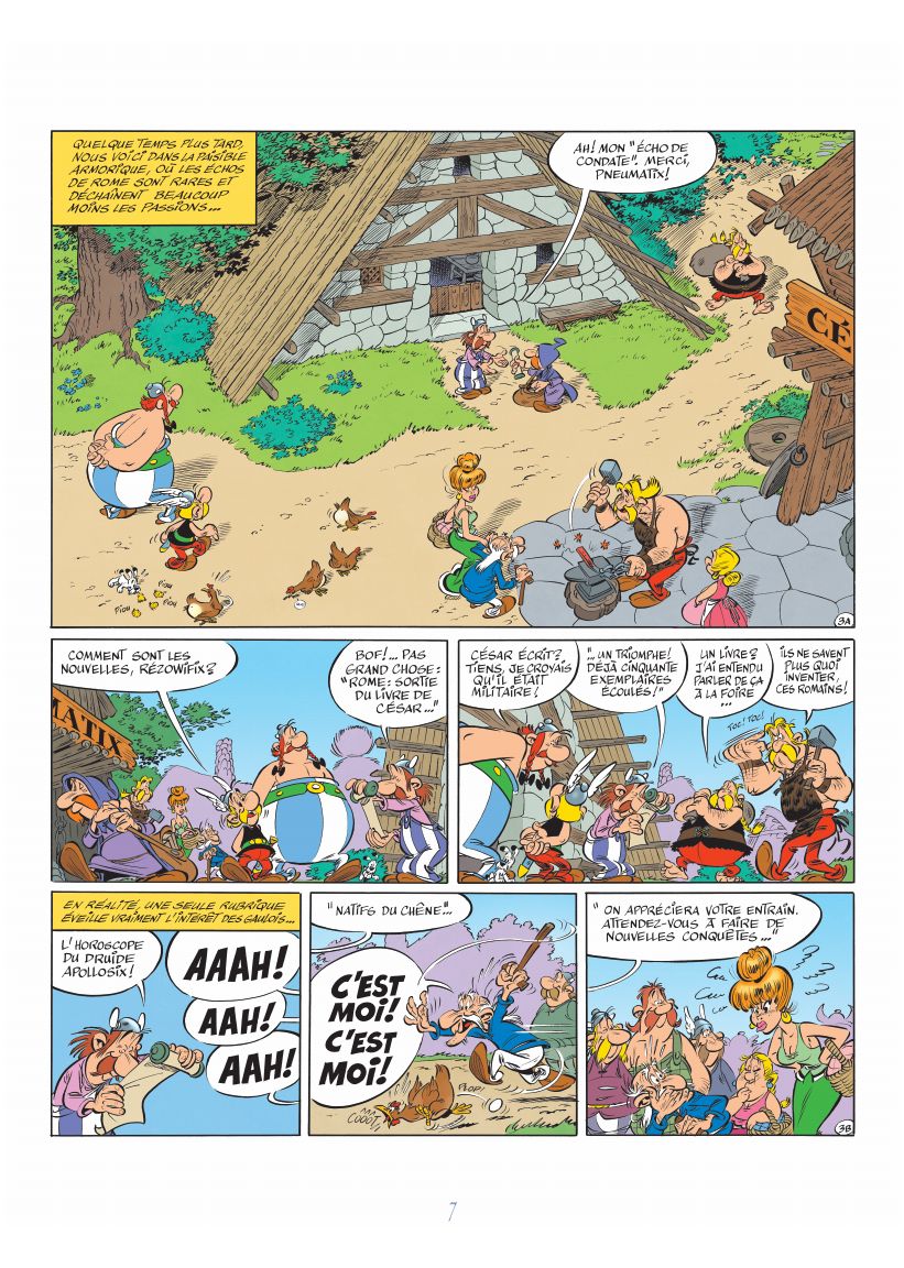 Les auteurs mettent en avant, malgré sa petite taille, le troisième larron de la bande : l'inséparable "Idéfix ,il découvre le panier à pigeons, son aversion aux romains ou sa participation au fou-rire des copains, son étonnement, sa férocité lors des batailles mémorables contre l'ennemi.
