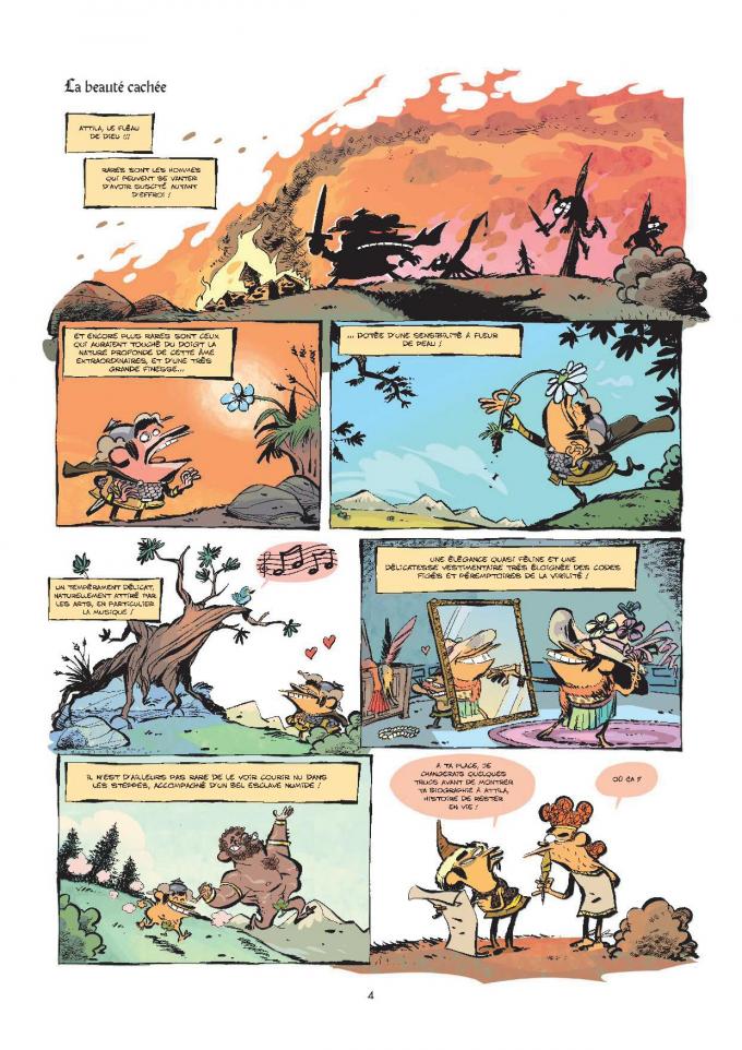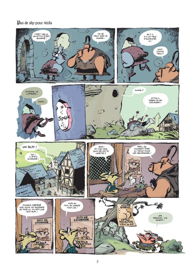 On retrouve le chef des huns dans un conflit familial de conquête de territoire. Les choses ne vont pas être simples. Il va y avoir du duel dans l’air. A part ça et avant ça, Attila s’est évadé de la geôle dans laquelle on l’avait laissé. Il a retrouvé son clan de barbares, tous plus crétins les Huns que les autres. Heureusement que Madame Vralouk, la femme de ménage, remet de l’ordre. Mais gare à qui ne s’essuira pas les pieds !