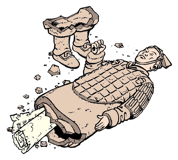 « - Il se trouve, Colonel Olrik, que je tiens de mes ancêtres un testament écrit il y a de nombreux siècles par mon aïeule Lu-Tah. Elle y parle d’un fils qu’elle aurait eu avec un certain Gong Shou, l’héritier désigné de l’Empereur Shi Huangdi… Si ce texte dit vrai, je suis le dernier descendant de ce Gong Shou… et donc l’héritier du premier Empereur ! Peut-on se prévaloir d’une meilleure ascendance lorsqu’on a pour ambition de s’emparer de la Chine ?! Mais ce seul document écrit par une pauvre inconnue, convaincra-t-il le peuple chinois ? Malheureusement non, on m’accusera de manipulation…
