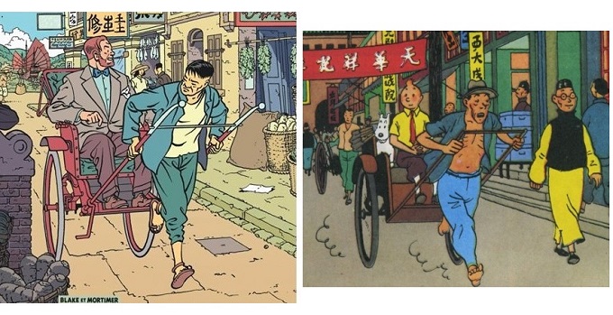 Leur couverture est un hommage appuyé au dieu Hergé. Dans une case du Lotus Bleu, Tintin est transporté en pousse-pousse dans une scène similaire.