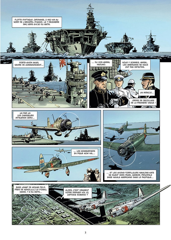 Dimanche 7 décembre 1941, 7h 48, plus de 400 avions japonais décollent de six porte-avions en direction de la base américaine de Pearl Harbor. Sans aucune déclaration de guerre préalable, ils vont bombarder Pearl Harbor en deux vagues aériennes successives. Dirigée par le général Heidi, l’attaque est une surprise totale pour les forces armées américaines.