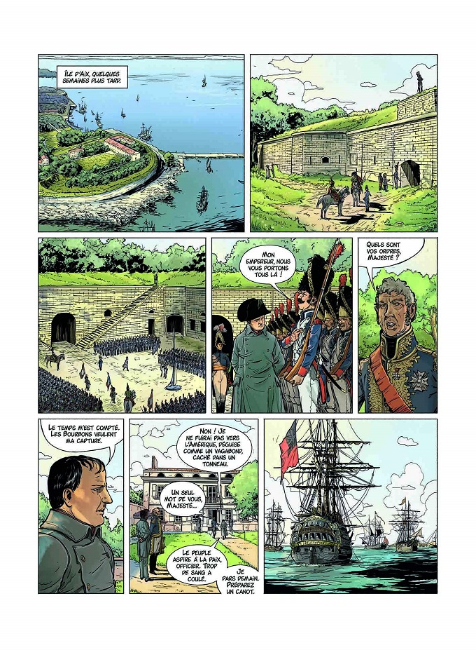 Le premier tome de cette nouvelle série débute à la fin des « Cent jours » pour se terminer à l’arrivée de l’Empereur à Sainte-Hélène. Alors qu’il espérait obtenir l’asile auprès des Anglais, Napoléon est considéré comme « prisonnier de guerre ». Les participants à la coalition contre Napoléon chargent les Anglais de détenir ce dernier afin qu’il ne sème plus le désordre en Europe.