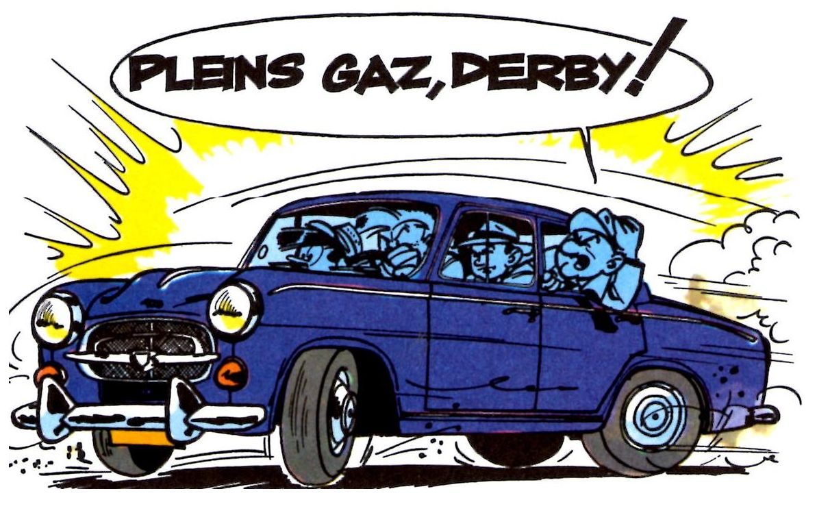 « Pleins gaz, Derby ! » En une bulle, tout est dit. L’ADN de la série est résumé dans cette case.