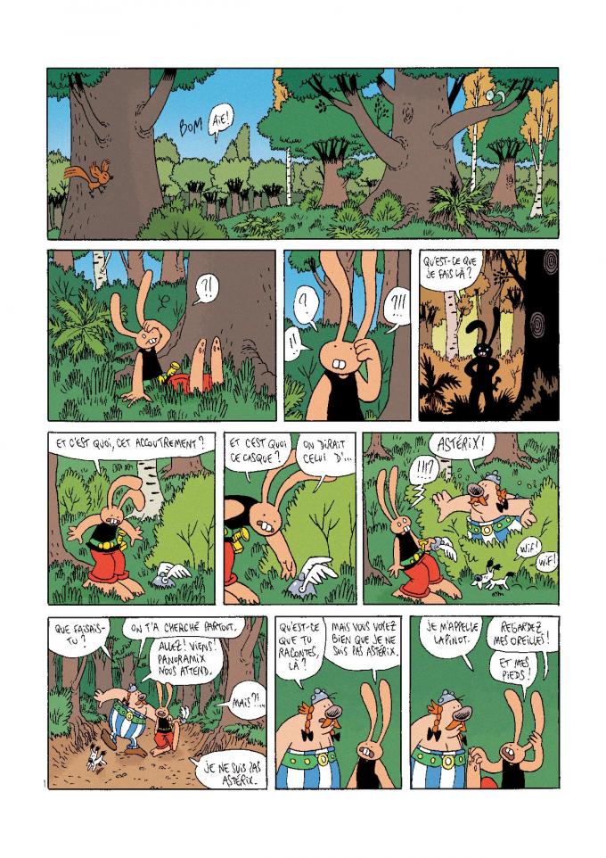 - Mais ?!... Je ne suis pas Astérix. Je m’appelle Lapinot. Regardez mes oreilles ! Et mes pieds ! »