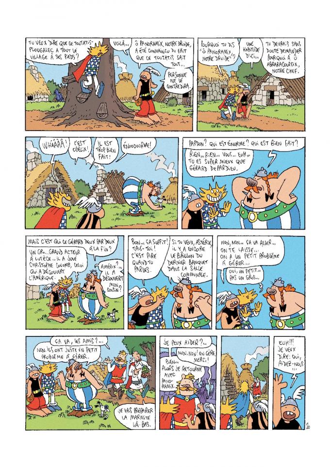 Il n’en reste pas moins que Trondheim construit une histoire avec ses tenants et ses aboutissants, comme si elle était écrite pour Uderzo ou Conrad. Un gaulois prétendant être le Dieu Toutatis débarque en Armorique, soit disant pour la joie d’être avec les villageois, mais aussi pour les prévenir d’un plan d’attaque massif préparé par les romains. Inutile de préciser que ses intentions sont moins philanthropiques que cela.