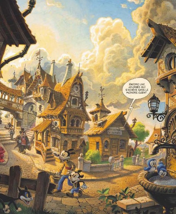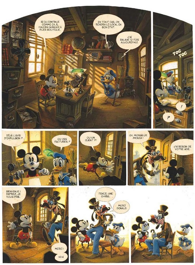 Pour ce huitième opus de la série de créations originales Disney et le troisième dont il signe le scénario, Lewis Trondheim frappe fort. Il met en scène les trois personnages phares Disney ensemble, chose qui a rarement été faite. On pense à quelques courts métrages comme celui où les compères sont nettoyeurs d’horloge, ou plus encore Les revenants solitaires, datant de 1937. Le trio va si bien ensemble.