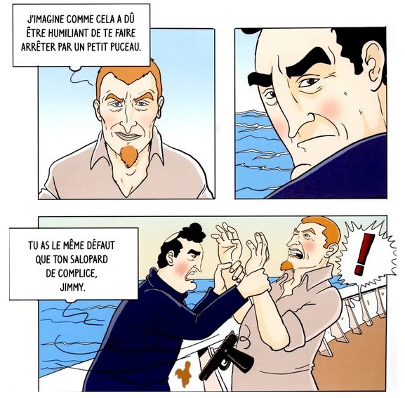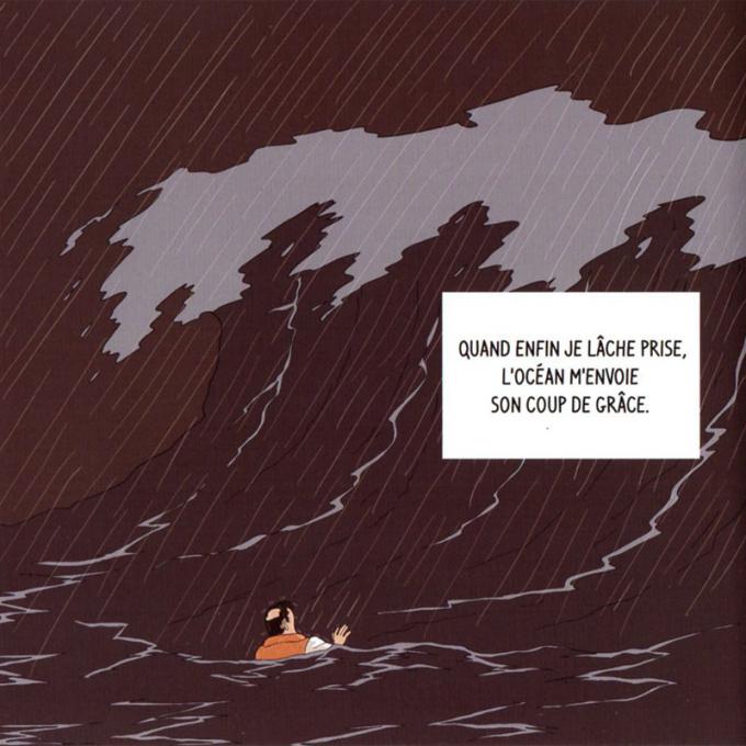 Sarah Belmas publie son deuxième album, après Lever l’ancre paru chez Côte-à-cas éditions. Elle est une vraie tintinophile. Elle connaît sur le bout des doigts le personnage dont elle s’empare du destin. Son histoire est un récit d’ambiance. Il se lit rapidement mais avec lenteur. La réalité est une traversée sur une mer d’huile. Mais ce n’est qu’une apparence. Les tempêtes sont dans l’esprit d’Allan. Belmas réalise une mise en abime. L’amour d’Allan, ne serait-ce pas elle-même ? La colorisation entre le bleu et l’orange, se mêlant dans des tons inédits, traduit cette frontière entre la violence et la sérénité. L’histoire se lit sur ce fil, comme si le lecteur était un funambule cherchant l’équilibre. On aurait juste apprécié un peu plus de densité dans l’intrigue.