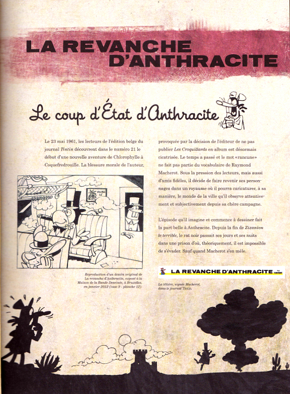 Les récits précédant sont tout aussi formidables. La revanche d’Anthracite et Chlorophylle joue et gagne forment en fait une seule longue aventure à Coquefredouille, une parodie de coup d’état et de guerre civile. Le furet gastronome est un drame plus classique en un acte (mais non moins intéressant) de nos petits animaux dans leur campagne habituelle, qui préfigure ce que seront plus tard les aventures de Sybilline.
