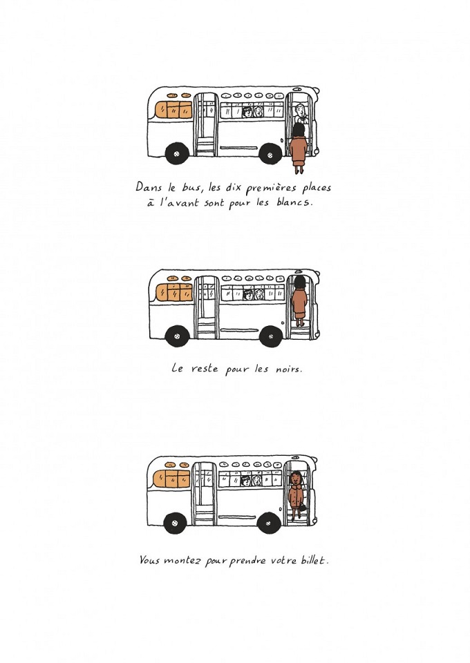 Alors que tout le monde connaît l’histoire de Rosa Parks, celle de Claudette Colvin est beaucoup plus méconnue. Cette biographie dessinée les fait se croiser et démontre le rôle primordial de la seconde dans l’évolution du changement des mentalités dans une Amérique raciste.
