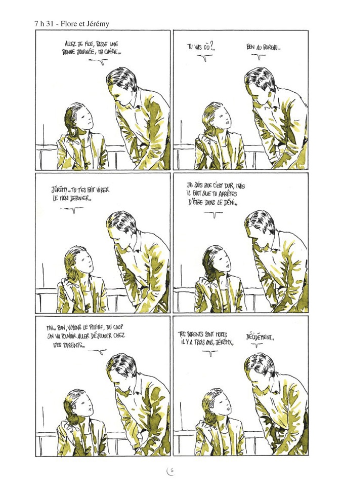 Avec Jean-Louis et Moins qu’hier (plus que demain), Fabcaro fait un doublé d’entrée dans la collection Glénaaarg ! Le premier est une réédition, le second une nouveauté. On mesure ainsi les progrès faits par l’auteur. Le premier est rigolo, le second est hilarant. Dans le premier, le graphisme rondouillard faisait partie intégrante du comique des situations. Dans le second, le trait réaliste évasif tranche avec les dialogues caustiques et cocasses, mais aussi réalistes.