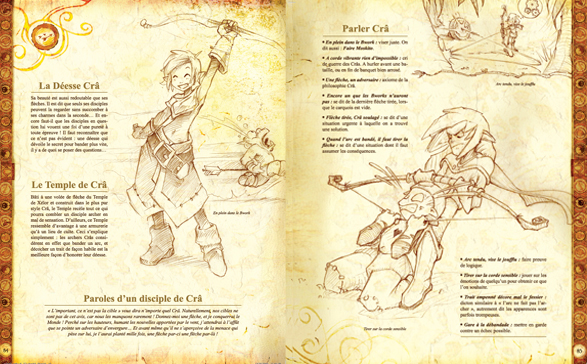 Vous connaissez le Jeu Dofus? Ah non celle-la je l'ai déjà faite dans une news précédente. Bon allez je rappelle en gros que Dofus est à la base un jeu video massivement multijoueur tout en flash online... ok? C'est la dernière fois que je le dis, hein? Donc de ce jeu, qui est devenu aussi un manga (Tu n'es pas au courant??? Hop on relit les news mangas!!!), a été fait un magnifique artbook avec de superbes dessins rassemblant tous les personnages de DOFUS. Un premier tome, nommé Session 1 est déjà sorti l'année dernière. Fin aout 2006 sortira la Session 2, où vous découvrirez des légendes et des mythes inédits ! De la genèse d’Amakna au conflit entre Brâkmar et Bonta, cet artbook vous invite au coeur de magnifiques fresques qui vous plongeront dans la saga et les batailles épiques de l’univers Dofus.