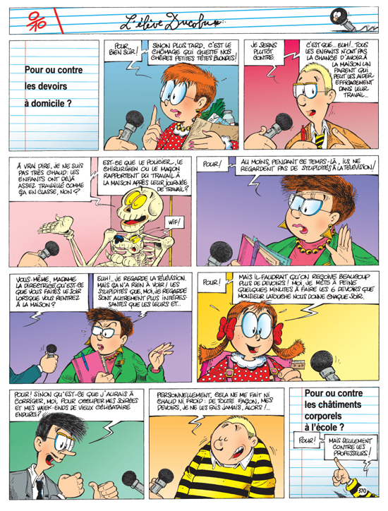 Pas de surprise avec ce nouvel album, plein de petites histoires amusantes dessinées avec talent et qui sentent le vécu. L’élève Ducobu, c’est une bonne BD pour enfant qui fait rire les parents. Une valeur sûre ! On ne peut bien entendu que l’encourager car c’est du quotidien et une bonne tranche de rire pour toute la famille !