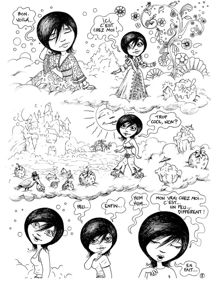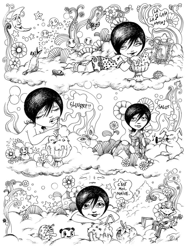 Dans la vie de Naïve, il y a aussi un univers merveilleux, ensoleillé, où elle croise sans interruption des milk-shakes et des coccinelles. Car la jeune fille a l’imagination fertile : une nécessité pour échapper parfois au cafard quotidien…