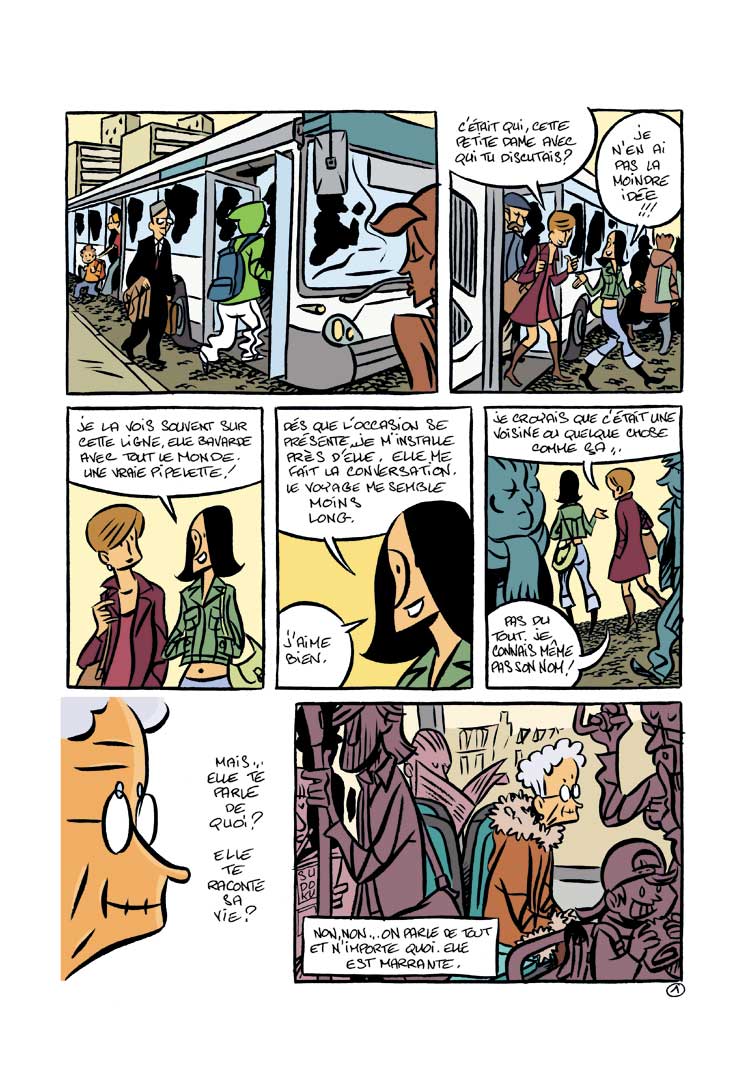 Que j'aime quand un album de ce genre dégage autant de sentiments, des sentiments que l'on aimerait tout le temps voir surtout dans les transports en commun. Chaque auteur apporte ici son talent pour nous montrer sa vision de ce que devrait être l'ambiance dans nos transports mais ce ne sont pas les grèves actuelles qui vont arranger les choses...