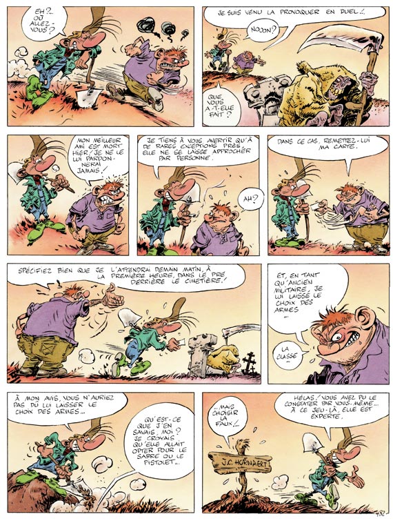 Rien à faire, on ne se lasse ni des scénarios du Génial Raoul Cauvin ni des excellents dessins de Hardy. Et puis, le personnage de la mort est vraiment excellent ! A lire absolument !!!