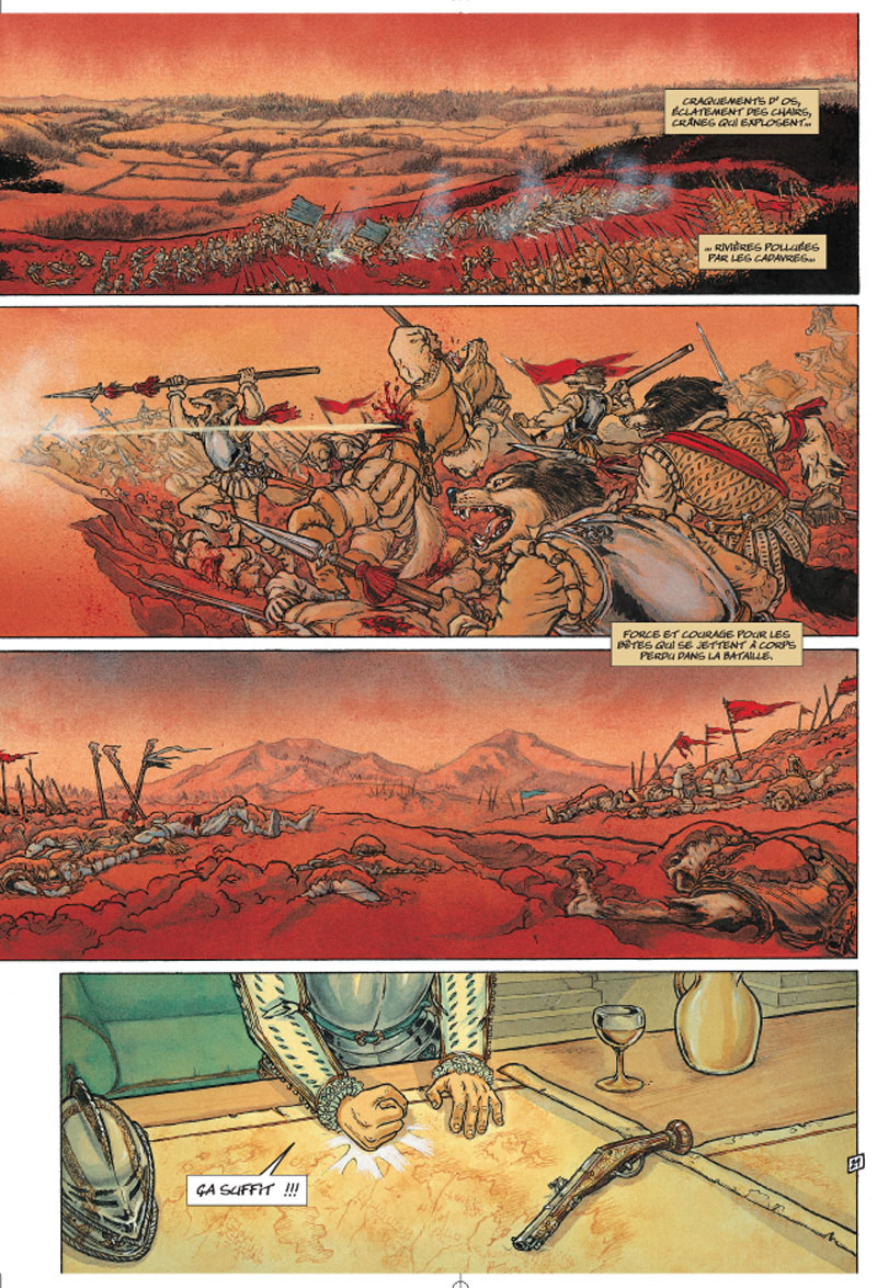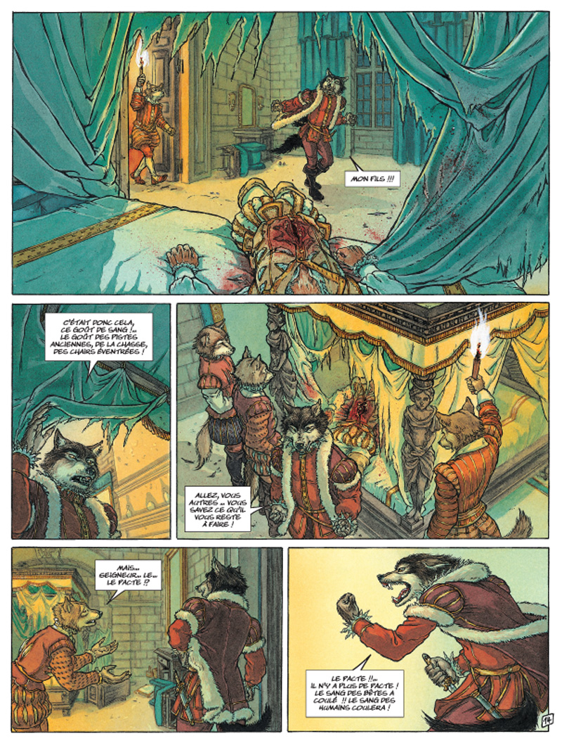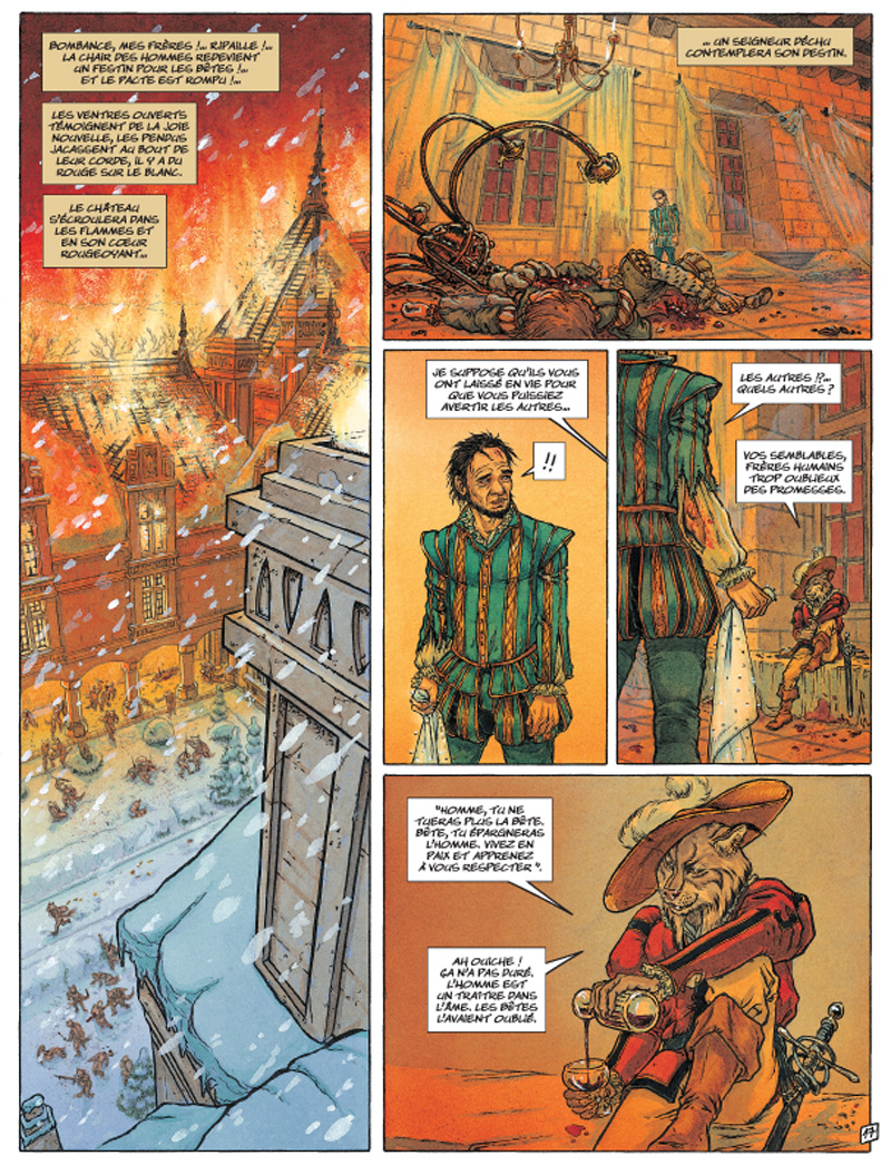 Bien évidemment impossible d'imaginer un conte sans un côté sombre et c'est là que Jean Dufaux rentre en piste. Ce dernier nous a concocté une guerre entre les hommes et les animaux bien noire, avec tous les ingrédients nécessaires, amour, haine, vengeance, colère...