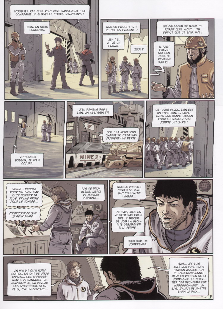 Lien est obligé de quitter la base avec Jdrou. En effet, sa protection des « Roux » lui vaut les pires représailles. Ils partent vers une base productrice de poissons. Pendant ce temps Yeuse s’est mis en quête de les retrouver