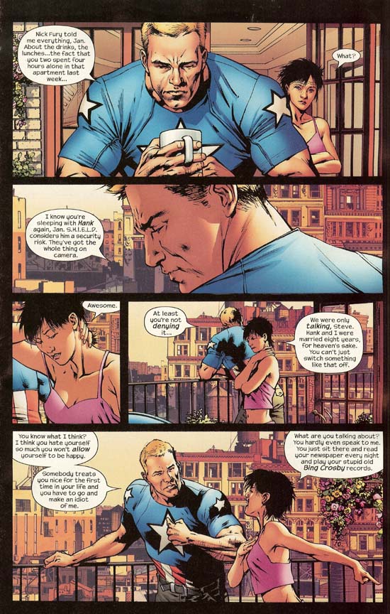 Né un quatre Juillet : Aaaargh la famille d’Œil de Faucon sauvagement assassinée !! Nick Fury en a gros car un traître se cache parmis les Ultimates !! Après vérification des caméras cachées dans la maison d’Œil de Faucon, il se trouve que le traître est… non c’est pas possible, cela ne peut être lui ?!?!! En tout cas Fury l’attend au tournant et ça va faire mal, très mal. L’Amérique va-t’elle s’en remettre ???