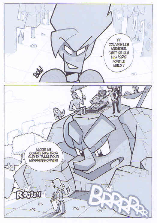 Comme j'ai dis pour les artbooks et le jeu, ils ont su créer un univers à la Tolkien mais version loufoque!! Ca part dans tous les sens, des persos hors du commun, des paysages simples mais géniaux! Et bien sûr un tas de référence sur les jeux videos, les animés, les films... bref on se régal à les chercher case après case...