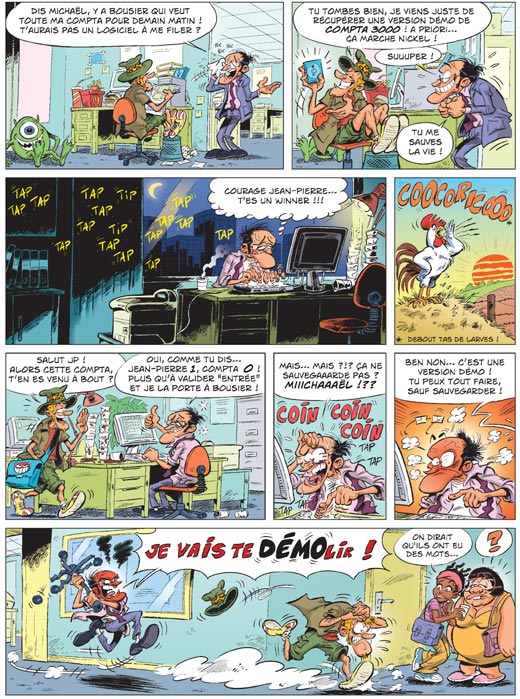 Les gags sentent le vécu et c'est ce qu'on demande à ce genre de BD ! Les gags sont droles et bien illustrés! Bien sûr les personnages sont caricaturaux ... mais le but n'est il pas de se payer une bonne tranche de rire sur ce sujet ? Qui plus est, d'expérience d'informaticien, je peux vous assurer que ce n'est pas si exagéré que ça ;-)