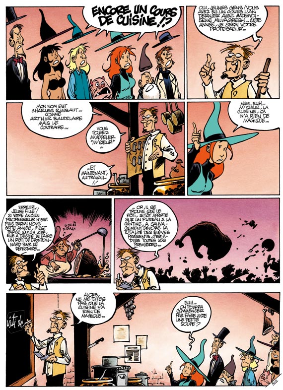 Prenez une apprentie sorcière, quelques camarades de classe et un professeur de cuisine un peu farfelu. Ajoutez-y une bonne dose d'humour et de fantaisie, saupoudrez d'un zeste de magie, faites ensuite mijoter le tout avec quelques oignons finement hachés, trois poils de chauve-souris et un peu de ciboulette. Au final, 44 planches savoureuses à déguster sans modération !