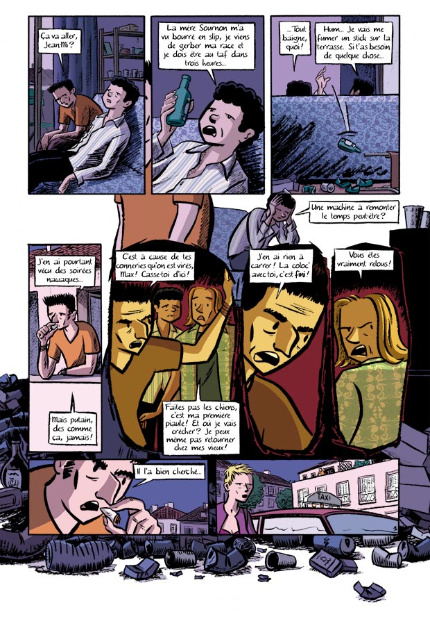 Le soleil se lève sur les restes de la méga teuf : la proprio les expulse ; Toine a découvert que son pote Julien sortait avec son ex ; Jean-Mi découvre les joies de la " période d'essai " en entreprise ; et Max a l'art de trouver les solutions qui font grincer des dents. Bref, c'est l'abattement chez les quatre colocs.