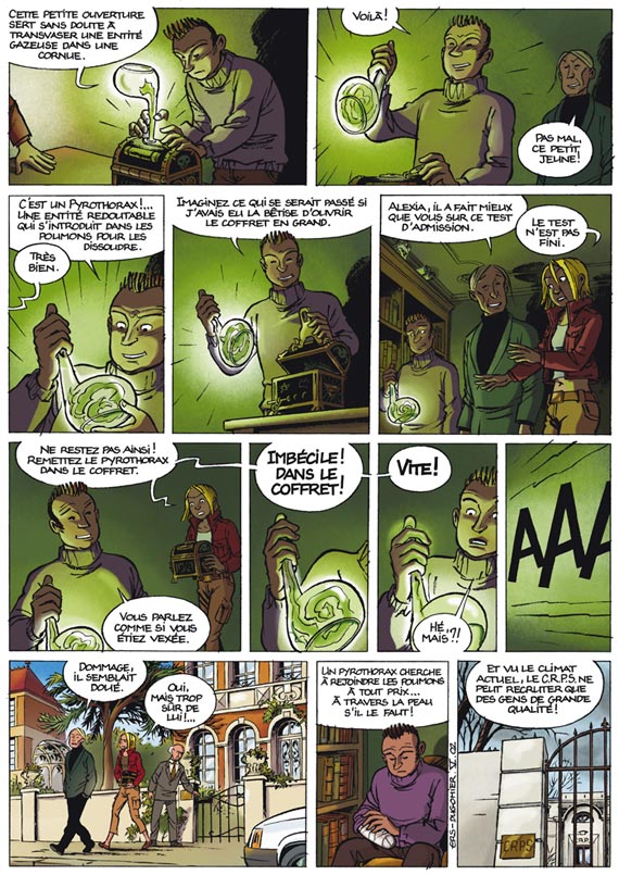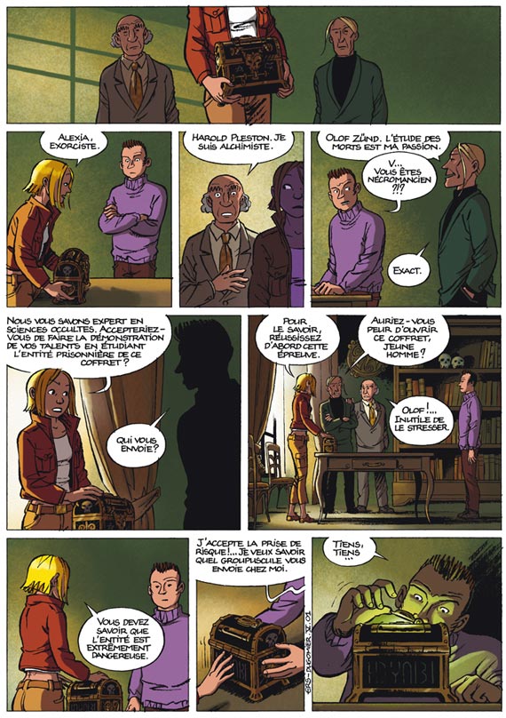 J’avais lu pas mal d’avis à propos de cette série. En général, plutôt des avis très positifs. Devant la surproduction éditoriale actuelle, il n’est pas toujours possible de tout lire et, ça et là, on passe à côté de séries qui valent franchement le détour…Les démons d’Alexia fait partie de cette catégorie. J’ai acheté ce tome 5 lors de sa sortie. Bien vite, je me suis rendu compte qu’il était préférable de commencer la série au tome 1, par le début. Ce que j’ai fait… Ce tome 5 est le début du second cycle. Il peut éventuellement être lu indépendamment car il y a un résumé des tomes précédents en début de livre mais franchement ce serait se priver d’une entrée en matière détaillée et passionnante…Le dessin est excellent. Il reste dans le style spirou, les traits arrondis, mais convient bien à l’esprit de la série. Je sais que cela peut déstabiliser certains, on aurait pu attendre un style plus réaliste…Mais, c’est aussi ce qui fait la particularité et le charme de la série. Je ne pense pas qu’il s’agit d’une série pour enfants, loin de là, mais plutôt pour des grands enfants! J’ai apprécié également les couleurs, très vivantes et très appropriées en fonction de l’action… Le dilemme magie blanche, magie noire qui est la trame de la série se base sur des faits et des personnages réels au départ (le C.R.P.S. : Centre de Recherche des Phénomènes Surnaturels).Le scénariste en a profité pour habilement développer le tout en une fiction déjantée... Le tome 4 de la série comprend en fin d’album un dossier appelé « les dessous du C.R.P.S. » qui explique avec plus de détails la trame historique qui a inspiré le scénariste L’histoire, pleine de rebondissement, nous vaudra encore de nombreux tomes…A noter qu’il existe sur la toile des sites très intéressants sur la série qui valent le détour. Le premier, officiel : ICI