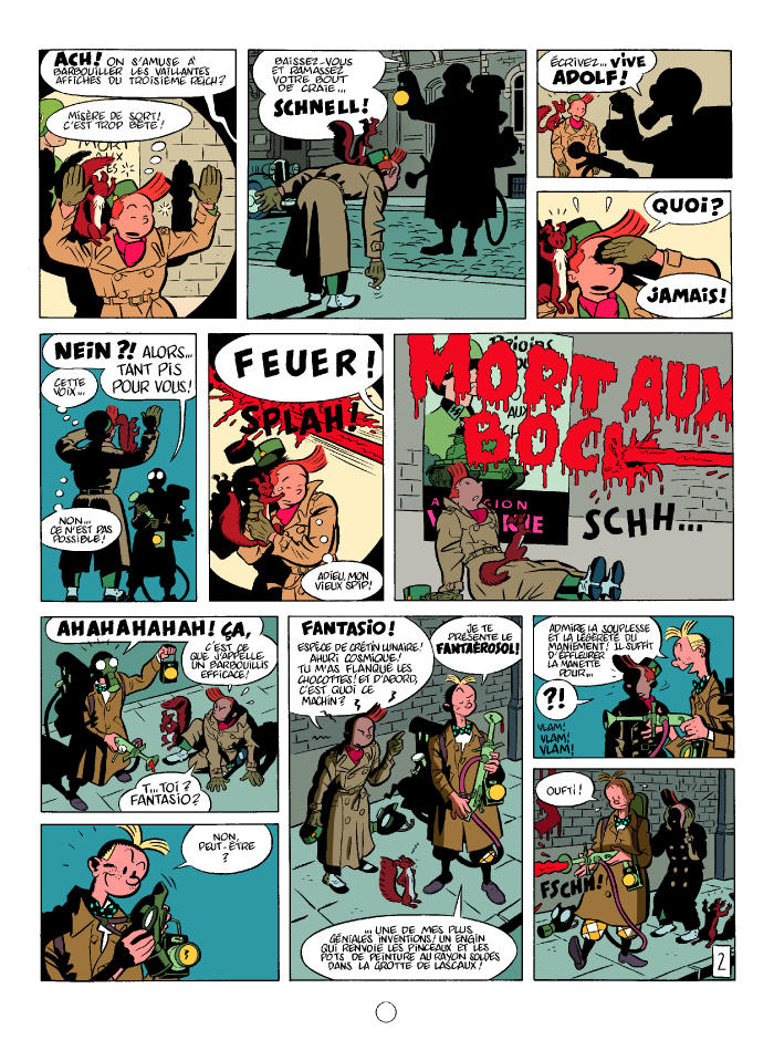 Avec ce "Spirou vert-de-gris", les deux auteurs nous livrent une aventure humoristique dans la digne tradition de "La grande vadrouille".