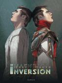 On connaît l’incroyable talent de scénariste de Makyo (Pierre Fournier de son vrai nom). Il nous a habitués à des histoires exceptionnelles comme Balade au bout du monde, Grimion gant de cuir, Le jeu de Pourpre, Le Maître de Peinture. Ces séries ont rencontré un fantastique succès auprès du public et de la critique. Pour mémoire, l’extraordinaire Balade au bout du monde exploitait l’idée d’un royaume hors du temps figé en plein Moyen Age. On s’attend donc de la part de Makyo à un récit original et hors du commun. Pari réussi avec Inversion qui reprend quelques uns de ses thèmes de prédilection: un royaume imaginaire et un héros écrivain torturé, victime de troubles mentaux. Stephen King a traité dans un de ses romans (La part des ténèbres) le dédoublement de personnalité d’un écrivain. Et, King a eu son double littéraire: Richard Bachman (un pseudonyme) qu’il a tué en 1985. La bande dessinée Borderline raconte l’histoire d’un écrivain en panne d’inspiration qui écrit pendant son sommeil des événements qui se passent dans la réalité. Inversion se démarque des ?uvres citées plus haut par la création d’un univers parallèle singulier où se trouve transporté le héros bien malgré lui. Si l’amnésie de Jhen fait penser à XIII et au roman La mémoire dans la peau, elle correspond ici à des problèmes de perception du réel. Jhen semble avoir une double personnalité. La maîtrise de ses actes et de son esprit lui échappe. Makyo explore ici, avec bonheur, les recoins les plus sombres de la personnalité qui nous obligent à affronter nos rêves et nos cauchemars. Et, il joue avec les sauts dans le temps et dans l’espace. Avec son trait réaliste et sensible, Jerry Hulard fait preuve d’une imagination fertile et débordante pour concevoir un monde parallèle avec sa propre architecture, sa faune, sa flore et ses habitants. Il paraît également à l’aise dans les scènes d’action. A dessein, les couleurs d’Irène Häfliger varient d’un monde à l’autre et provoquent un effet saisissant.