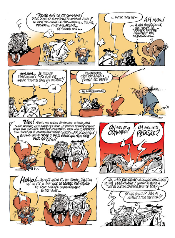 Dirick ouvre un cabinet de psychiatre et opere l'analyse des plus grands héros de la BD franco-belge. Chacun à leur tour, nous passerons d'une version cocasse des Bidochons, Rahan, Blake et Mortimer ou encore Boule et Bill ou Gaston lagaffe et j'en passe ( une dizaine au total ). Chaque héros se confiera sur le divan ( ou non ) de leur complèxes, problemes existentiels, leur âmes dans tous leur états à un medecin qui tentera les explications les plus appropriées au risque parfois du saccage de son cabinet. La méthode employée par ce dernier plaira certainement et à coup sûr à la profession. Pour le lecteur lambda, cela sera un bon moment de rire et de lecture car les "remake" des personnages sont aussi tordants que réussis.