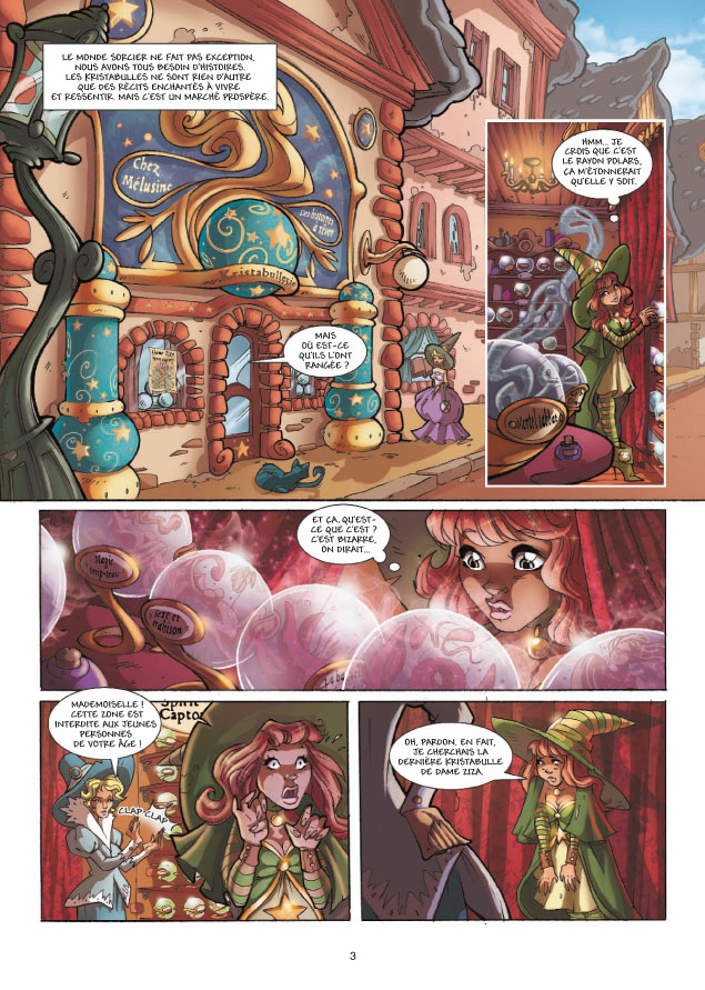 L’histoire principale, dessinée par Ood Serrière, nous présente Aï-Lynn une jeune sorcière qui désire devenir une grande créatrice de kristabulles, des bulles magiques contenant des récits à ressentir en tout genre! Une belle originalité qui nous pousse à continuer cet album enchanteur dans ses moindres recoins. Lors de cette histoire, Aï-Lynn ressentira et créera plusieurs kristabulles, et les récits qu’elles contiennent seront dessinés par le reste du collectif à savoir Aurore, Kmixe, Silvestro Nicolaci et Kapou. Des styles tous différents les uns des autres pour de sympathiques  nouvelles dévoilant à chaque fois une petite morale bien piquante, rigolote ou voir tragique. Pour ma part pour le côté négatif de cet album, je me pencherais surtout sur les typographies souvent mal choisies, voir raides et mal placées qui par rapport à la magie des différents artistes, gâchent un peu certaines cases. Mais dans l’ensemble cet album est harmonieux et le passage d’un artiste à un autre n’est pas dérangeant puisqu’ils content chacun une histoire avec des personnages différents laissant la trame principale à Ood Serrière, la dessinatrice menant le bal !
